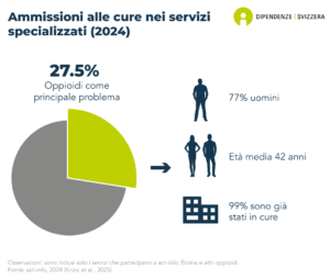 Krizic I., Balsiger N., Gmel G., Labhart F., Vorlet J. & Amos J. (2025). Rapport annuel act-info 2024: Prise en charge et traitement des dépendances en Suisse. Résultats du système de monitorage. Berna: Ufficio federale della sanità pubblica (UFSP). Link